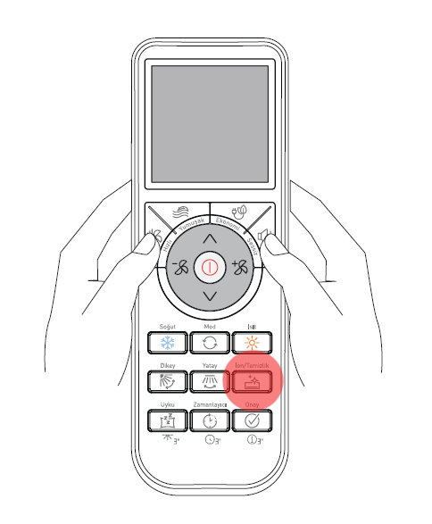 2. Fonksiyonu iptal etmek için ürün çalıșır durumda iken uzaktan kumanda üzerindeki “Ion/temizlik” tuşuna “Oto Temizlik” ikonu sönene kadar basın.